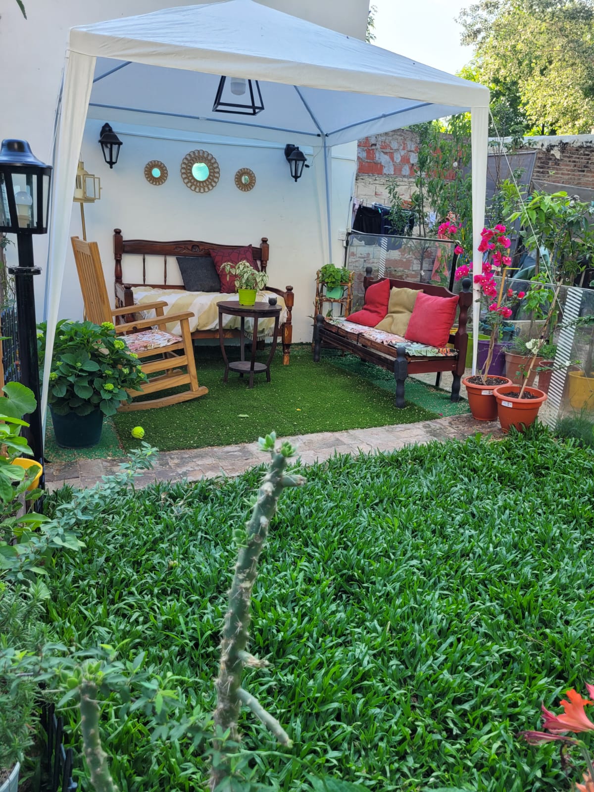 Casa al frente con rejas de seguridad , ingreso al living comedor amplio de 9 Mts x 3.30, cocina separada con artefactos completos , medidas 3.55 x 3.25, consta de 2 dormitorios y 1 comodín , baño , patio con jardín, parrillero, lavadero/opción baño y espacio cochera. Todos los servicios. Apta Crédito !