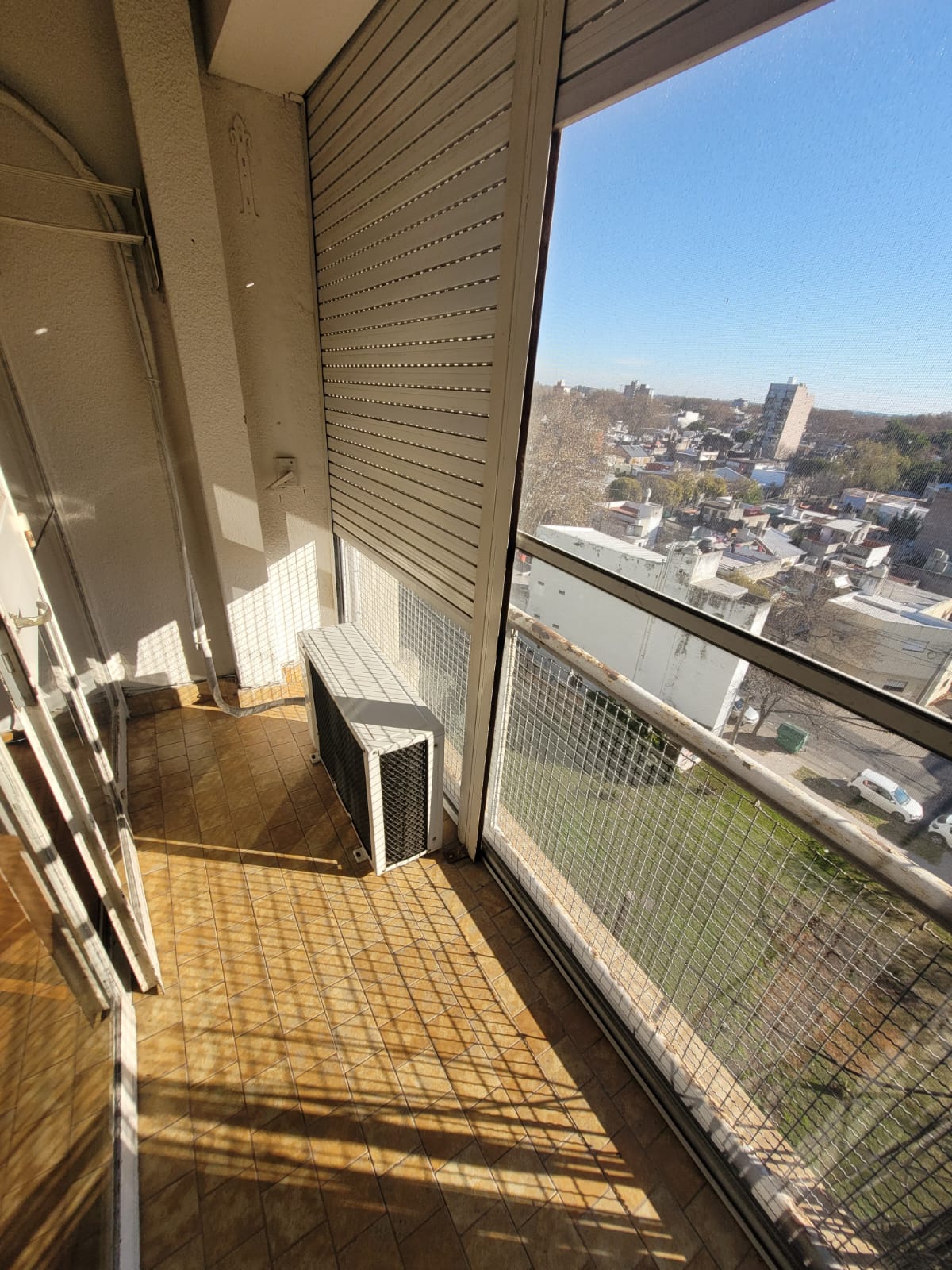Living-comedor amplio, con salida al balcón. El balcón cuenta con cerramiento y persianas de plástico.