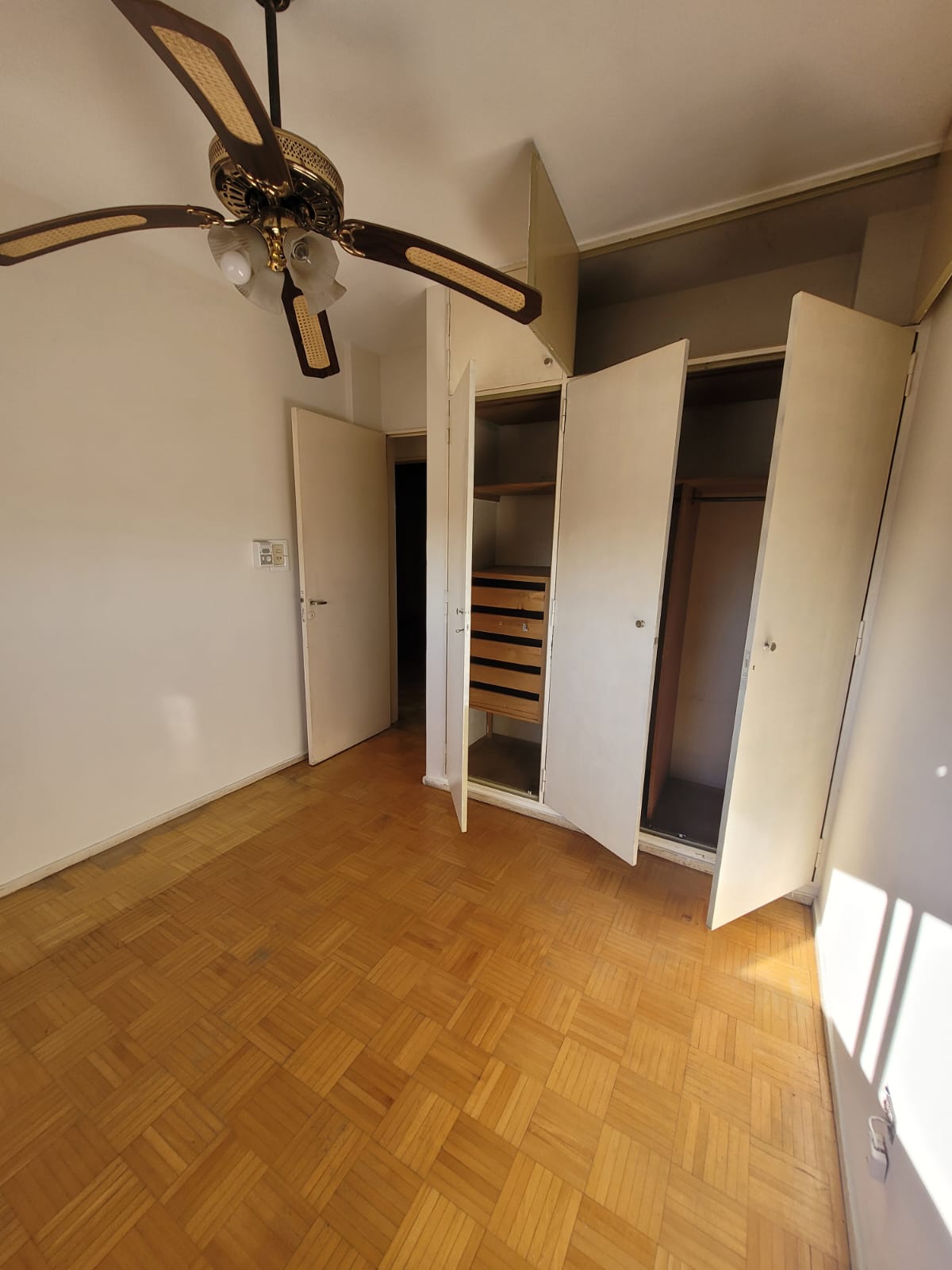 Dormitorios luminosos con placares completos con ventiladores de techo.